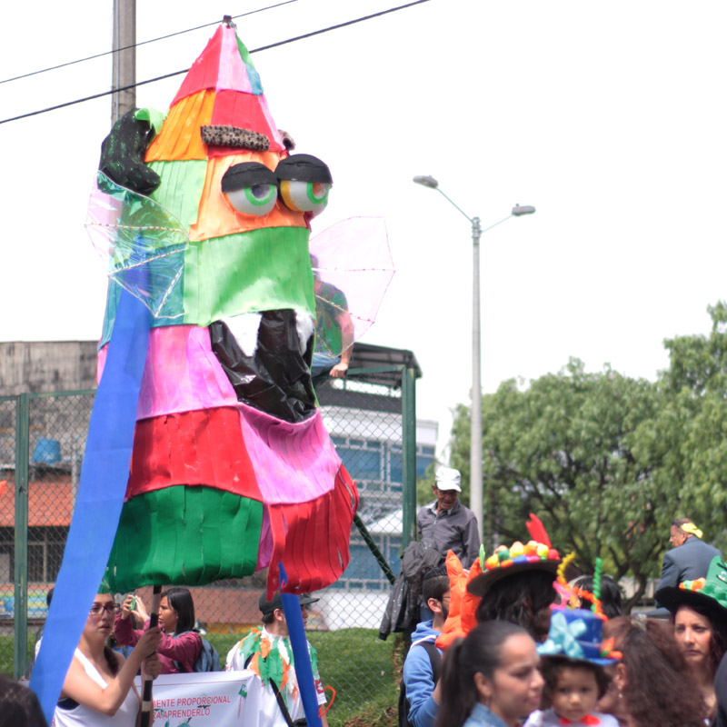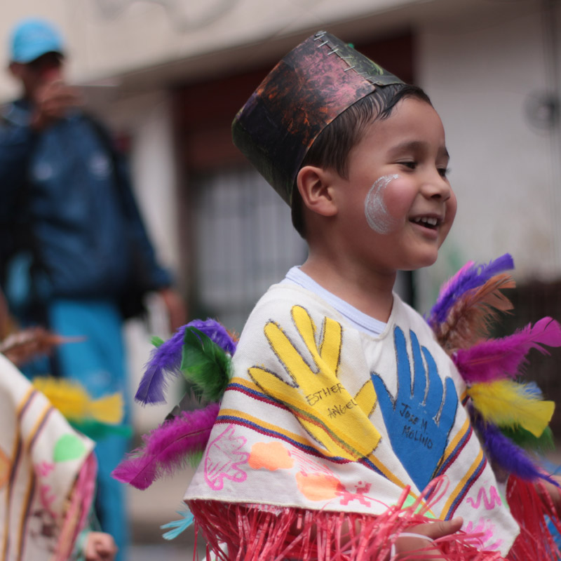 Finalmente surgió la idea de hacer un carnaval que recogiera lo aprendido en clase. Los maestros convocaron a las familias y a la comunidad y se generaron redes en las que, por ejemplo, los comerciantes del barrio le entregaban a los maestros materiales que les sobraban (telas, madera, cartón, pintura, entre otros) para que ellos, junto a los niños, elaboraran trajes o elementos para el carnaval.