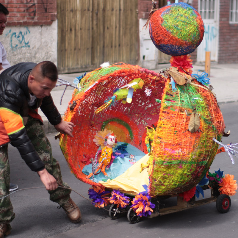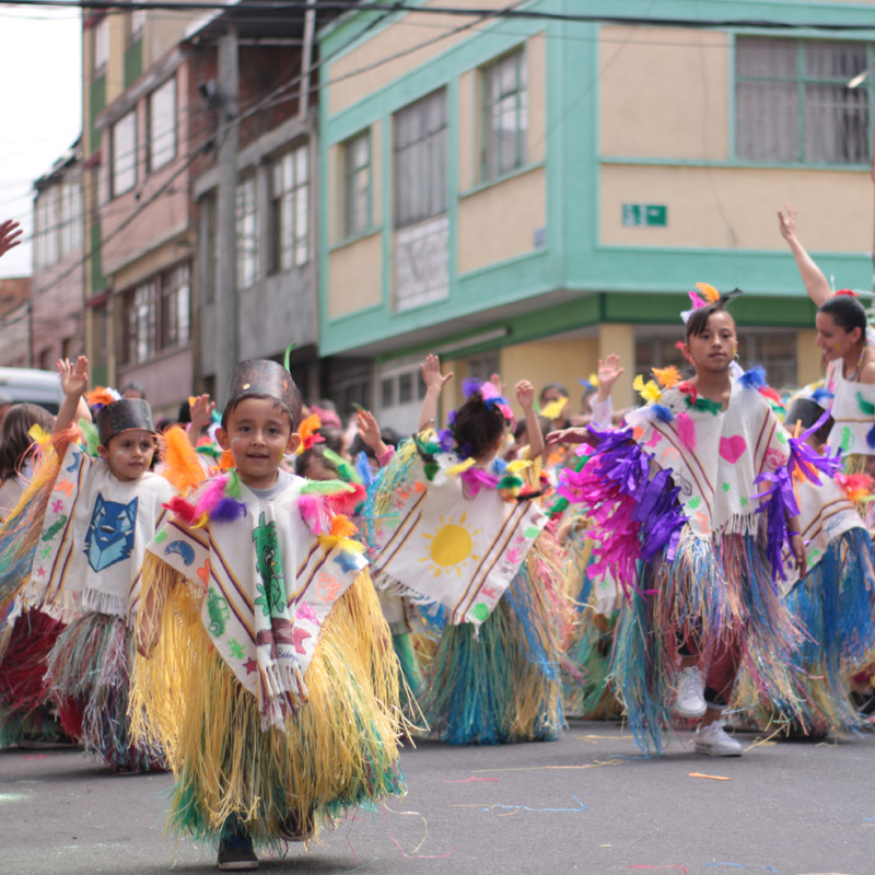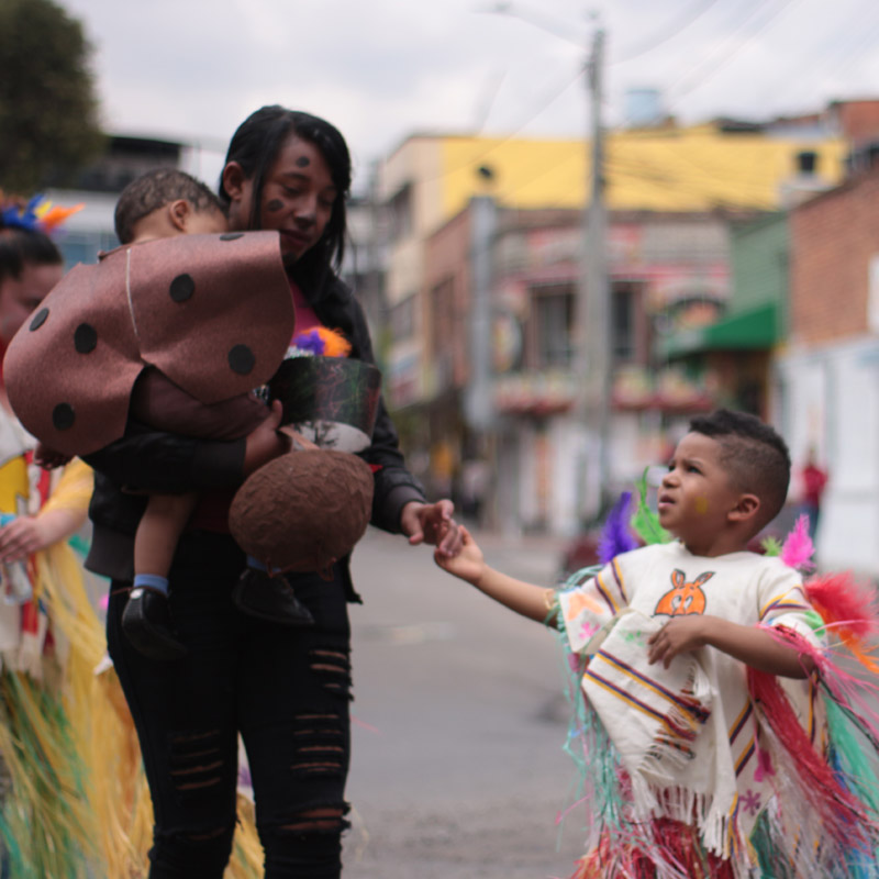 En el barrio Restrepo, de Bogotá, conocido por ser un punto comercial de fabricación de textiles y venta de calzado, los niños de siete meses a cinco años del Hogar Infantil Jairo Aníbal Niño se toman las calles desde hace cuatro años. El Carnaval Construyendo Nuestra Infancia es un evento en el que los niños, con coloridos disfraces y comparsas, transitan, recorren y viven las calles, y mientras lo hacen los vecinos se asoman por las ventanas y graban con sus celulares el evento: se sorprenden, aplauden, ríen. Bebés, madres embarazadas y niños que no superan los 120 centímetros de estatura caminan, bailan e incluso lloran por las calles del barrio sin una cuerda o una fila que los limite. Los conductores tienen que parar y ante el espectáculo cambian su rostro de enojo por el de ternura cuando ven a estos niños pasar con sus trajes. Las abuelas se animan a bailar, los niños que no están en la comparsa se unen y en general se siente el apoyo de la comunidad.