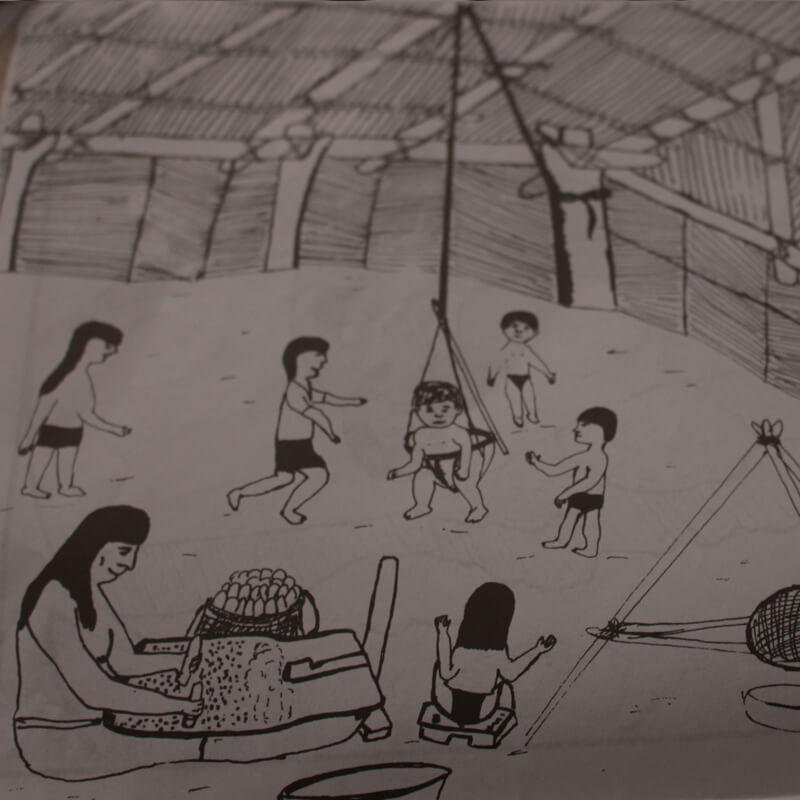 El libro representa varios momentos del ciclo de vida desde la lactancia, así como la cosecha, la recogida y transformación de la yuca brava en casabe. También se representa el Taro, un artefacto fabricado de bejucos y con un tejido en el que los niños menores de un año pueden sentarse con la única condición de que el dedo gordo toque el suelo –a su lado los cuidadores realizan otras tareas: en este artefacto los más pequeños juegan, aprenden a caminar y se relacionan con los demás niños.