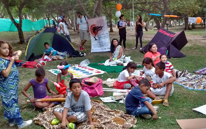 A raíz de hacer varios encuentros como estos La sombra del matarrón inició una actividad llamada Camping Literario dos veces al año: en abril y octubre por ser los meses que más se tiene presentes a los niños. En el Camping Literario se socializan las experiencias con los Jardines de palabras y se invita a otras organizaciones que trabajan con la promoción de lectura y el arte.