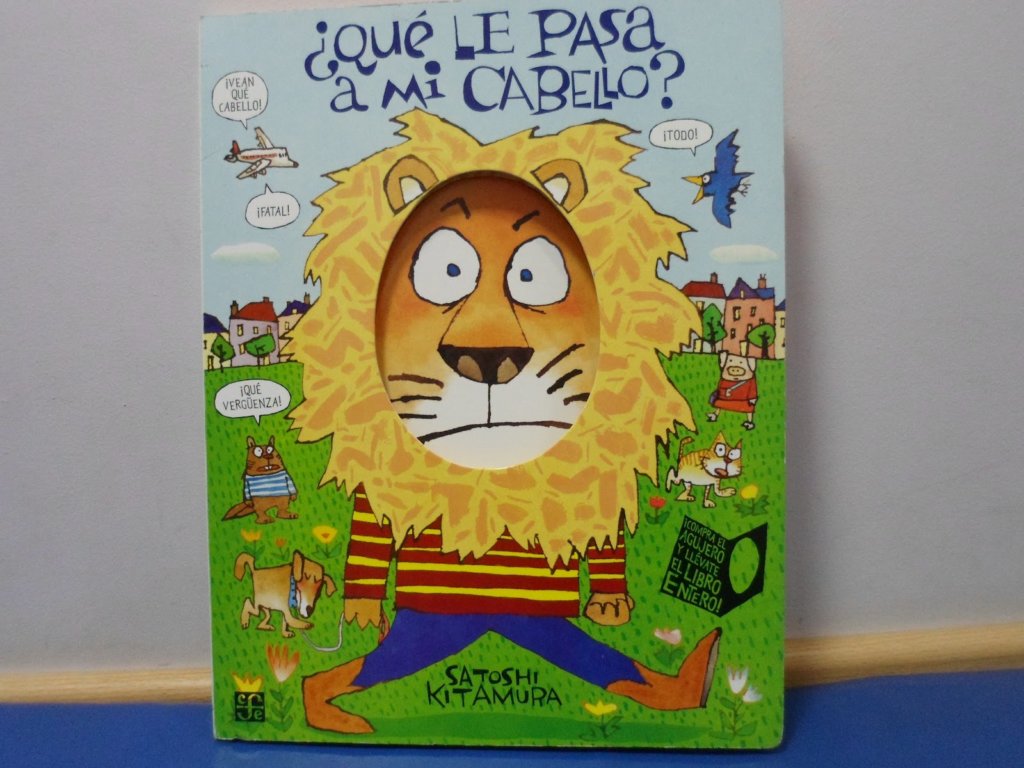 Con este libro, ¡Qué le pasa a mi cabello! de Satoshi Kitamura, mi primito y mi hijo aprendieron que los leones también sufren mucho a la hora de elegir el peinado perfecto para una ocasión especial, juegan a ser leones y se divierten con cada cambio de león.