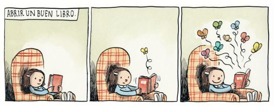 Liniers empezó leyendo a Mafalda, una niña que no explica, que no le gusta tomarse la sopa ni portarse bien y que cuestiona todo el tiempo lo que la rodea.