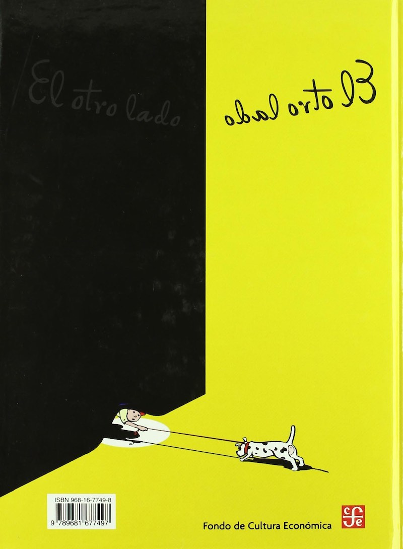 El otro lado es un libro que desde su portada y contraportada nos ubica en dos lados: como espectador y como protagonista. Nos invita a ver qué hay desde otro lugar, a asomarnos a la ventana y observar la calle, la gente que camina, el vecino que también observa… Pero, ¿cómo nos verán los que van caminando? A través de las páginas vemos el espacio con otros ojos: desde otra altura, posición, lugar, perspectiva.