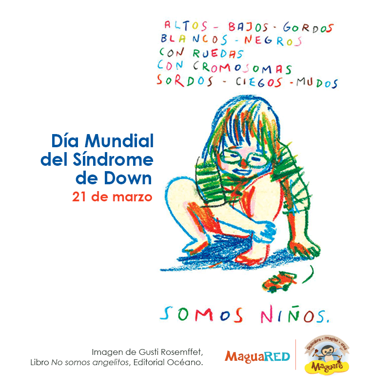 No somos angelitos es la historia de un niño con un cromosoma de más que llega a un nuevo hogar. Allí recibe cumplidos de los familiares, amigos, conocidos y extraños: “¡Es un sol!”, “¡Es un tesoro!”, “¡Maravilloso!”, dicen una y otra vez: “¡¡Es un angelito!!”. ¿Angelito? Esta es la pregunta que se hace Gustavo Ariel Rosemffet –Gusti–, autor e ilustrador argentino, en su más reciente libro.
