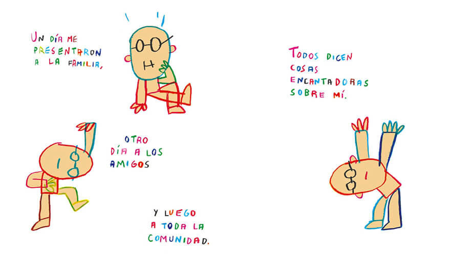 En realidad lo que busca el libro es cambiar un poco la mirada. En el fondo no es más que eso, es ver que tenés una persona, punto, con la condición que tenga. Cuando aparece una persona con síndrome de Down en una clase, esa clase se enriquece de esa relación y a su vez sus padres; se van creando fractales que se van ampliando de pequeños grupos de la sociedad. Lo noto cuando me encuentro con niños que nunca tuvieron contacto con niños con síndrome de Down o sus familiares, ellos reaccionan con la forma cómo los miran, le tienen un poco de miedo a lo diferente, no saben bien qué hacer o no hacer. Diferente a los padres que han tenido contacto o a lo niños que tuvieron contacto, para ellos es bastante normal, les pueden gustar o no. A veces no son angelitos, a veces les hacen cosas al otro, a un compañero y no les gusta y se pelean y eso está bueno porque cuando sean más grandes es lo que les va a pasar en la sociedad. Habrá gente que los va a aceptar, gente que los van a mirar raro, gente que no los va a aceptar y eso pasa con personas de todas las condiciones: con un inmigrante, con los negros, gordos, flacos… Es un tema de identidad.